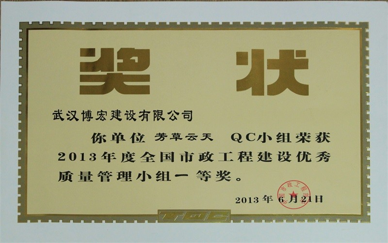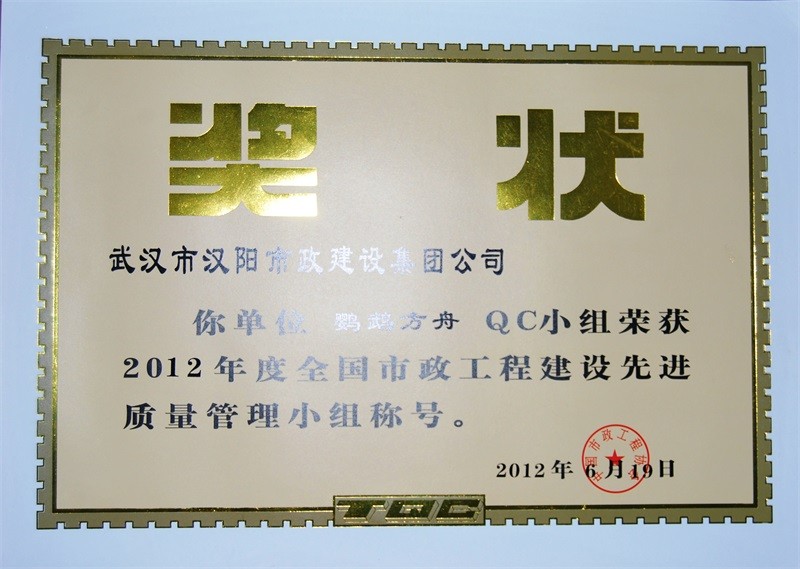 2012年度全國市政工程建設(shè)先進質(zhì)量管理小組