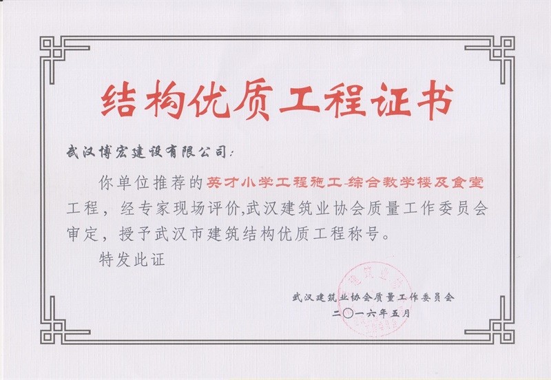 英才小學(xué)-教學(xué)綜合樓結(jié)構(gòu)優(yōu)質(zhì)工程證書(shū)