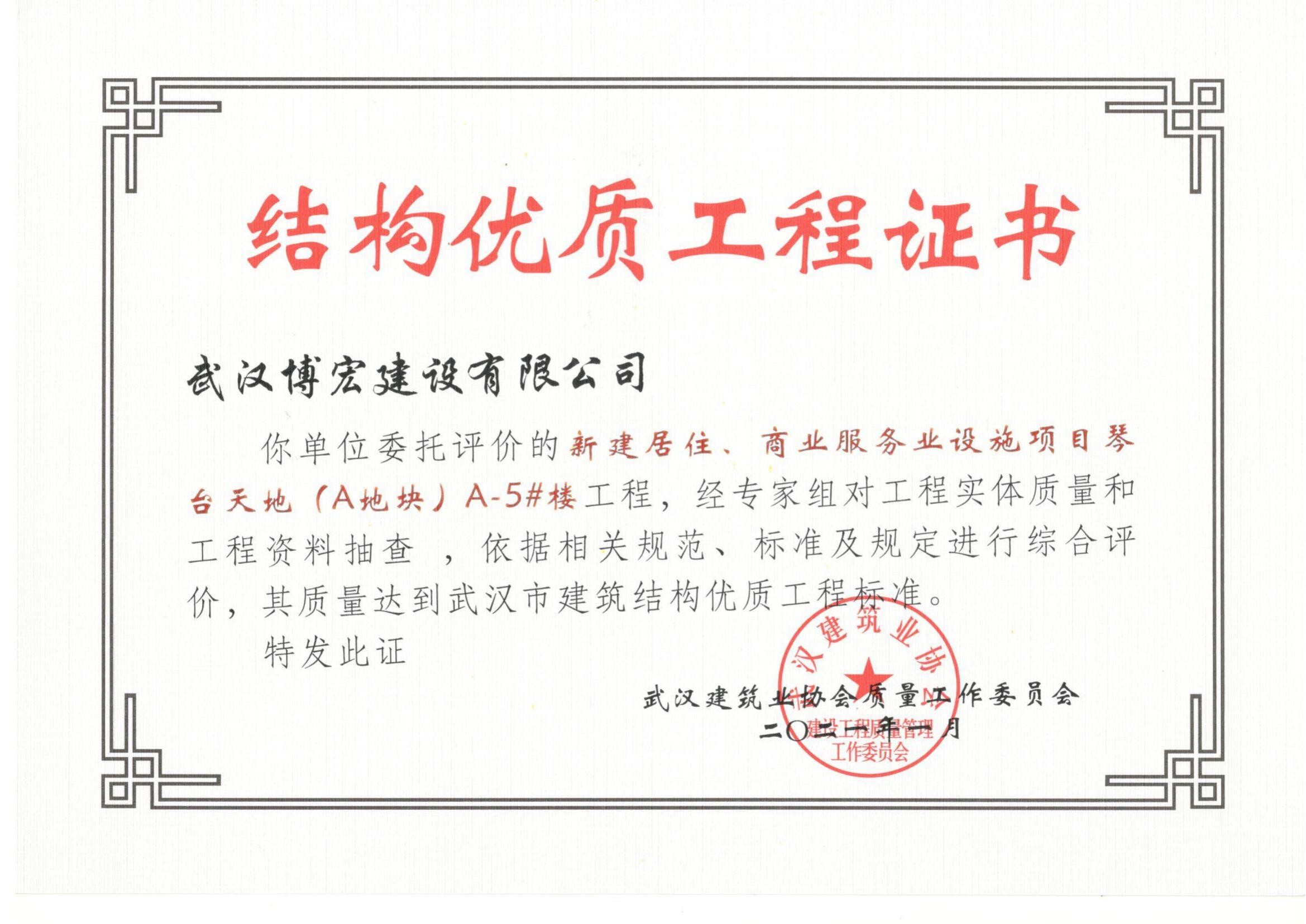 2021年武漢市結(jié)構(gòu)優(yōu)質(zhì)工程(琴臺(tái)天地(A地塊)5棟