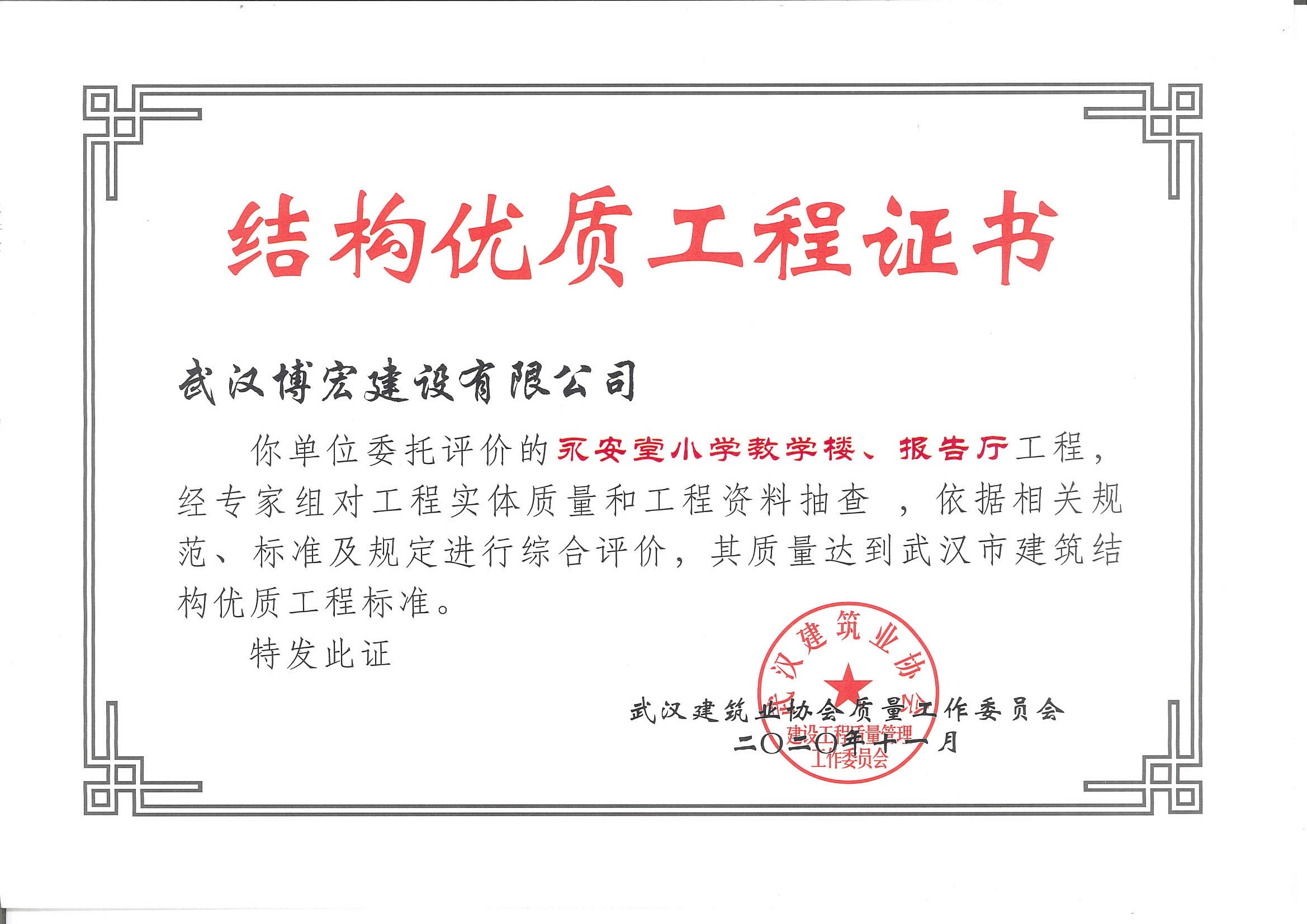 永安堂小學(xué)教學(xué)樓、報(bào)告廳武漢市建筑結(jié)構(gòu)優(yōu)質(zhì)工程