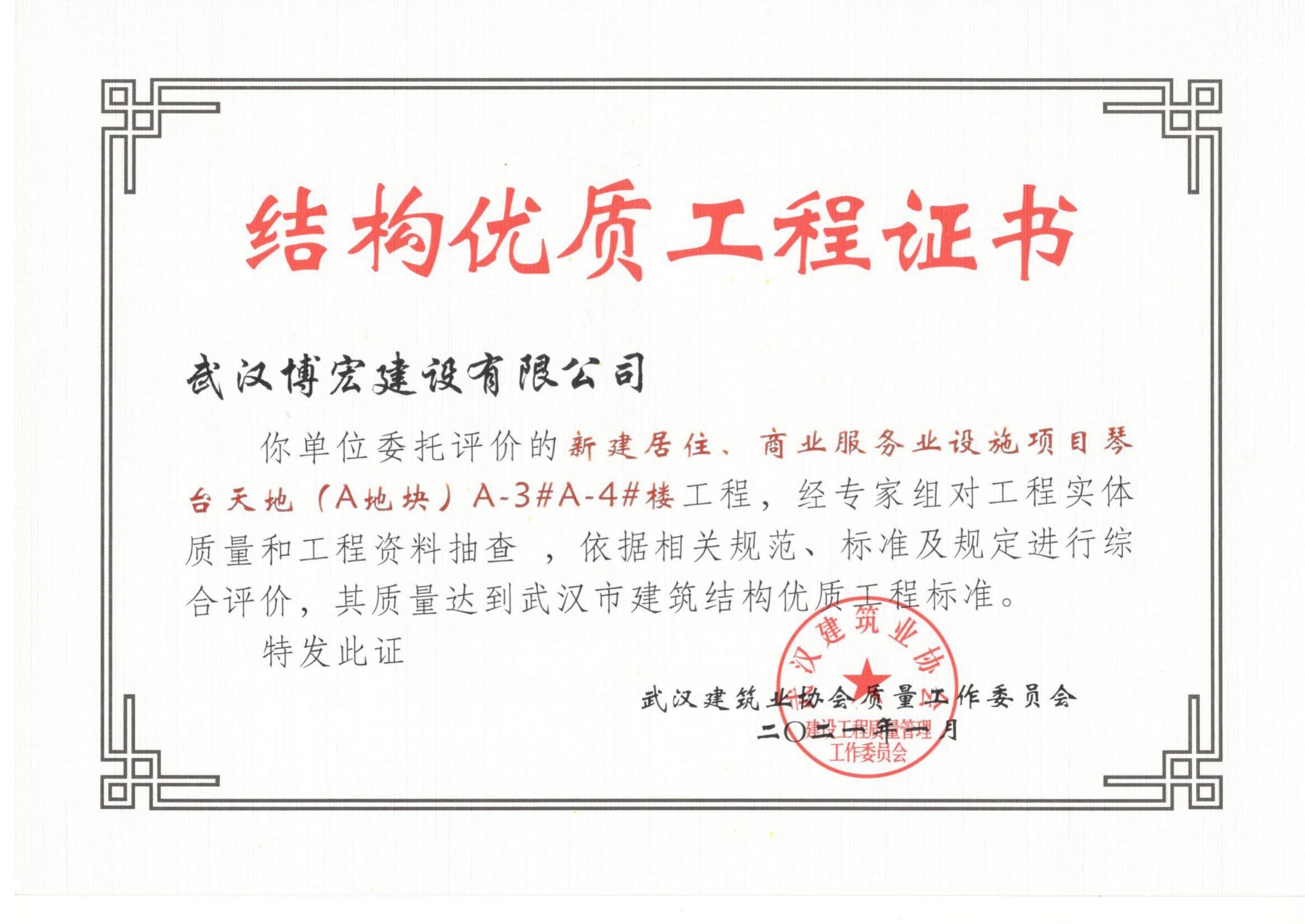 2021年武漢市結(jié)構(gòu)優(yōu)質(zhì)工程(琴臺(tái)天地(A地塊)3、4棟
