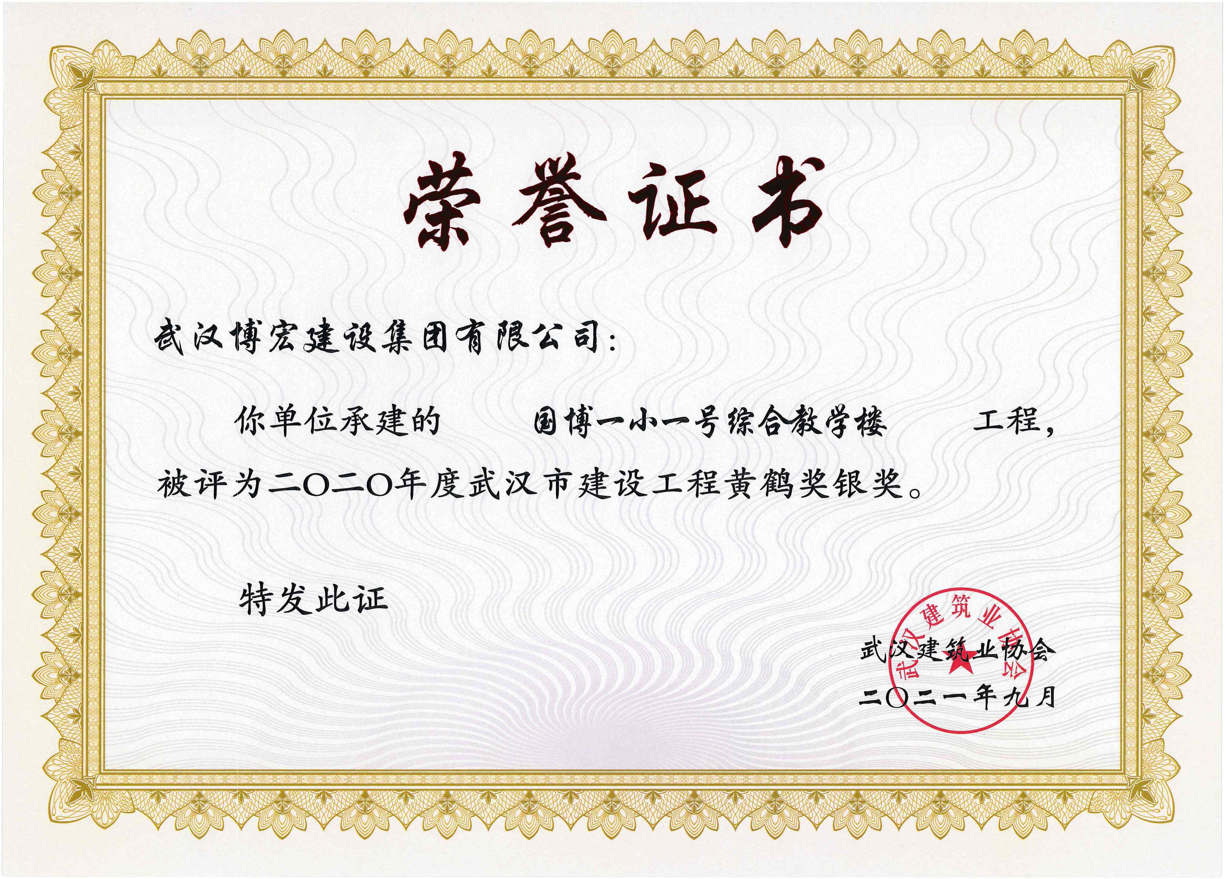2020年度武漢市建設(shè)工程黃鶴獎(jiǎng)銀獎(jiǎng)-國博一小一號綜合教學(xué)樓