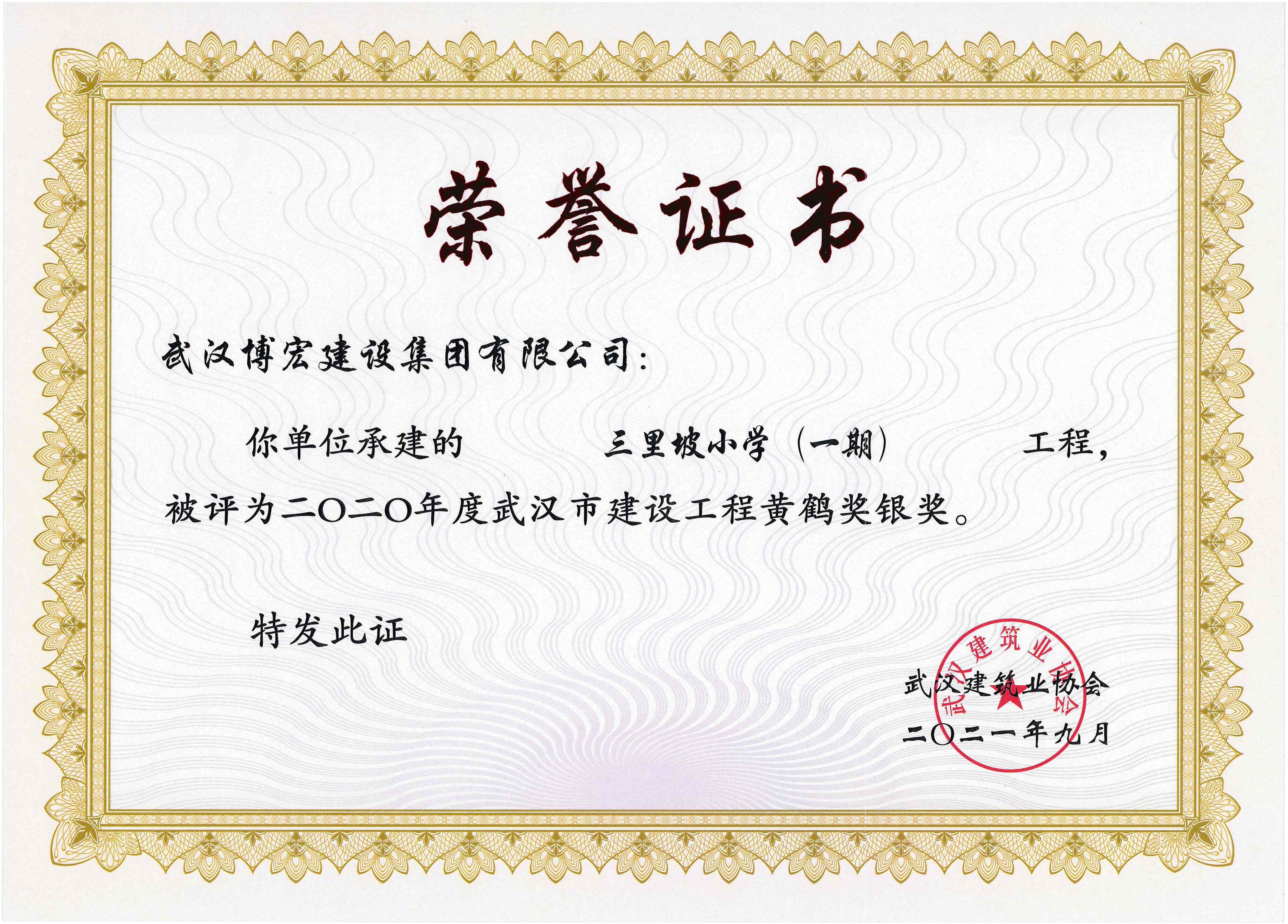 2020年度武漢市建設(shè)工程黃鶴獎(jiǎng)銀獎(jiǎng)-三里坡小學(xué)(一期)
