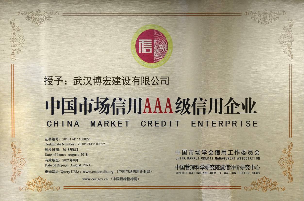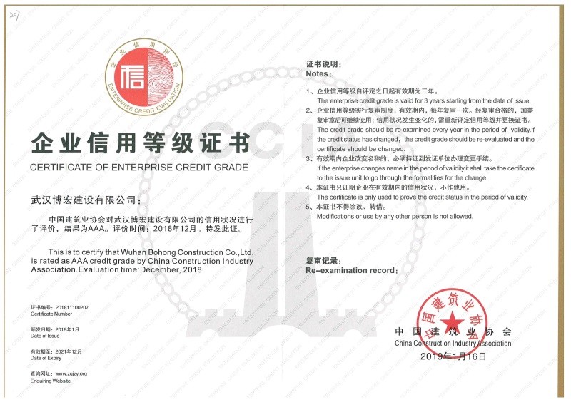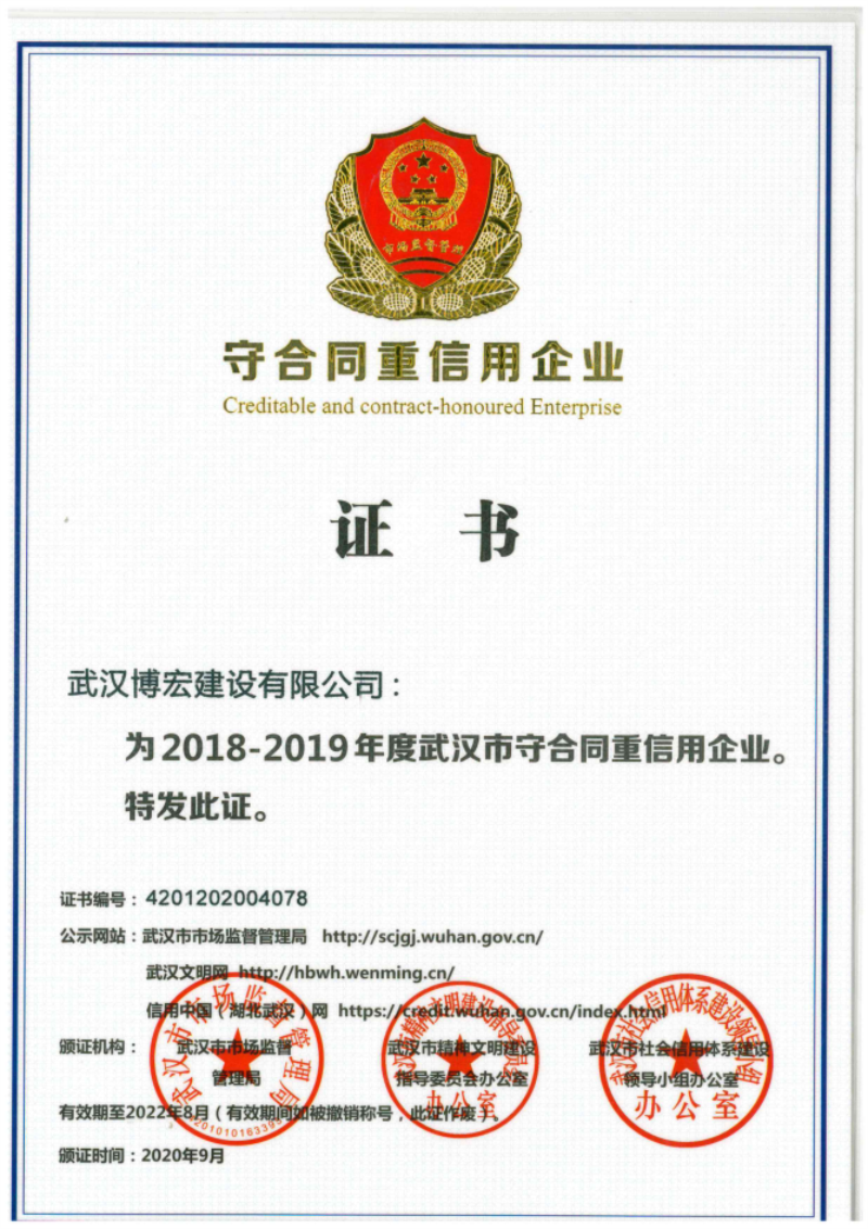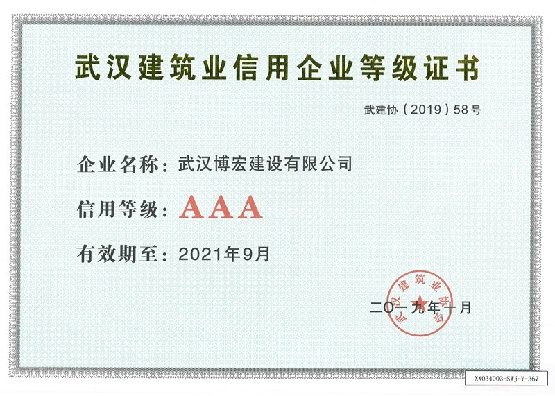 武漢建筑業(yè)信用企業(yè)等級證書