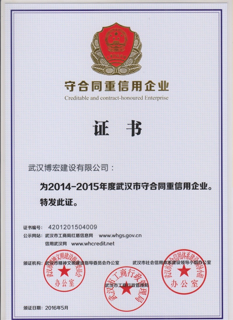 武漢地區(qū)建筑業(yè)企業(yè)信用等級(jí)證書2017-2019年度
