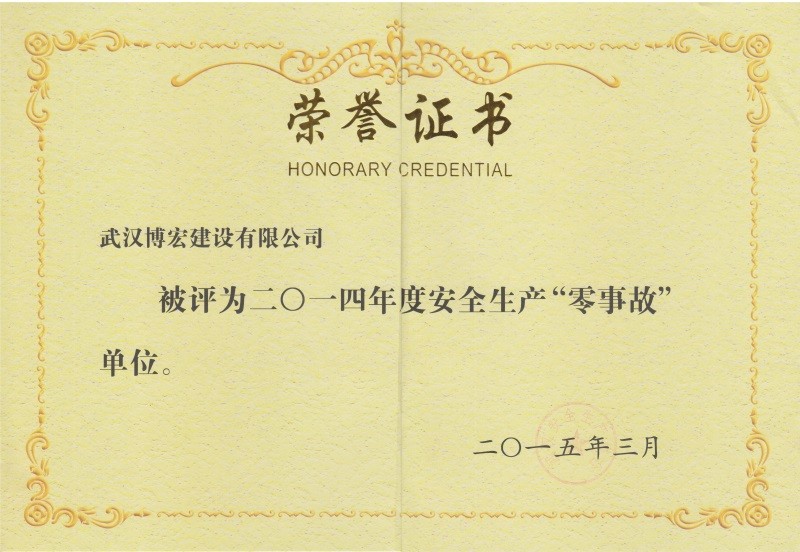 2014年度武漢地區(qū)市政行政企業(yè)信譽等級證書
