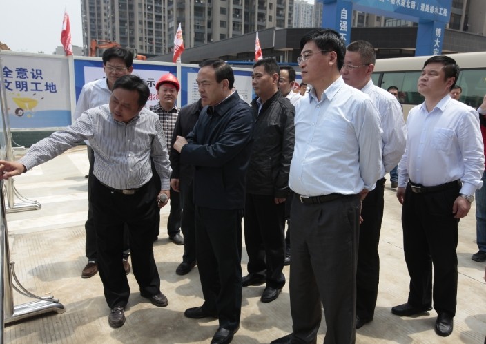 5月5日,武漢市市長(zhǎng)唐良智、副市長(zhǎng)張光清一行蒞臨博宏建設(shè)十升路道排工程項(xiàng)目施工現(xiàn)場(chǎng)檢查指導(dǎo)工作。