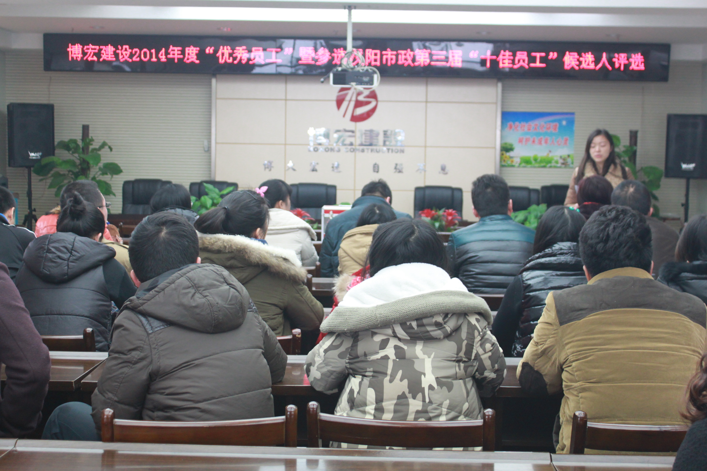 12月29日下午,武漢博宏建設(shè)有限公司在會議室舉行了2014年度“優(yōu)秀員工”暨參選漢陽市政第三屆“十佳員工”候選人評比活動,旨在弘揚先進(jìn),樹立典型,營造積極向上、爭當(dāng)先進(jìn)的工作氛圍。博宏公司領(lǐng)導(dǎo)班子、各部室行政人員及各項目部成員參加了評選活動。