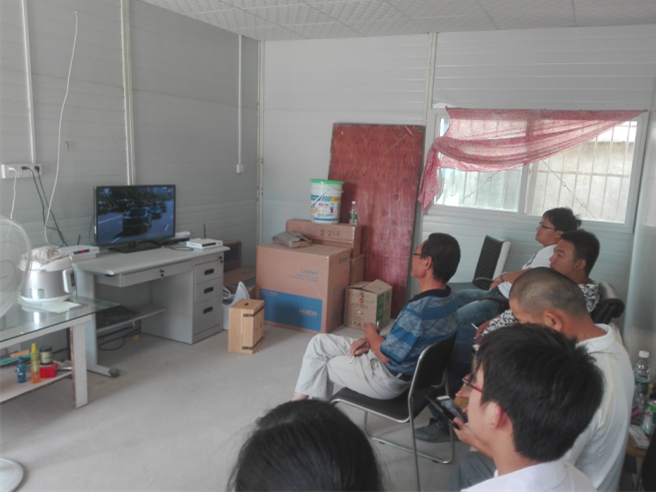 項目經(jīng)理王哲帶領(lǐng)項目部成員及農(nóng)民工收看閱兵儀式