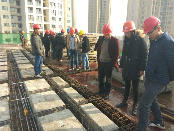 為促進對“蜂巢芯空心樓蓋”新工藝在公司項目上的認識與運用,2016年12月16日上午9點,漢陽市政集團總工辦與博宏建設總工辦聯(lián)合組織,在月湖小學項目現(xiàn)場開展了蜂巢芯空心樓蓋施工工藝學習交流活動。