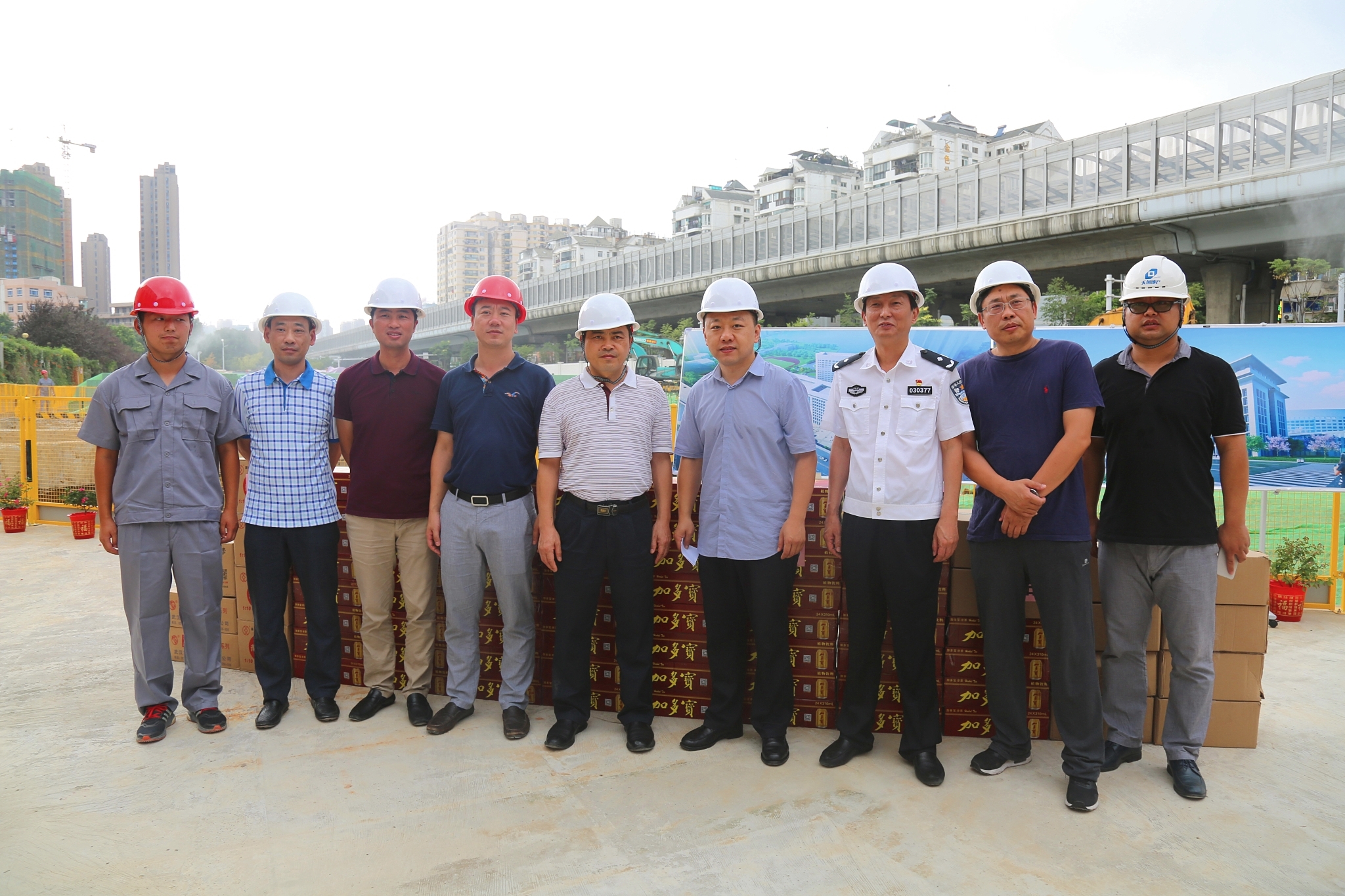 入伏以來(lái),武漢持續(xù)高溫,近日來(lái)氣溫更是突破40度大關(guān),7月31日下午,漢陽(yáng)區(qū)委副書記閻磊、區(qū)委常委張才勝、副區(qū)長(zhǎng)胡勇等一行冒著高溫走訪慰問(wèn)了漢陽(yáng)市政博宏公司在建工地,對(duì)在高溫下堅(jiān)守建設(shè)崗位的基層施工人員表示關(guān)心和慰問(wèn),并送來(lái)了消暑降溫用品,漢陽(yáng)市政黨委書記兼董事長(zhǎng)嚴(yán)悌文、漢陽(yáng)市政博宏公司總經(jīng)理錢濤等陪同。