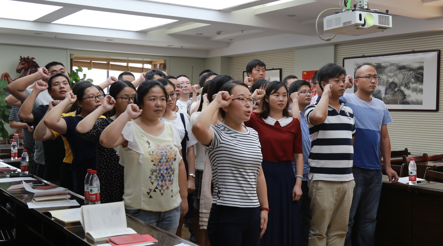 為迎接黨的十九大順利召開,8月15日,漢陽市政三公司八月支部主題黨日活動在公司會議室拉開帷幕,活動以“學(xué)習(xí)‘7.26’習(xí)近平總書記重要講話精神,迎接黨的十九大”為主題,全體黨員齊唱國歌、重溫入黨誓詞、看黨章讀黨規(guī)、學(xué)系列講話······活動環(huán)節(jié)豐富,內(nèi)容充實(shí)。