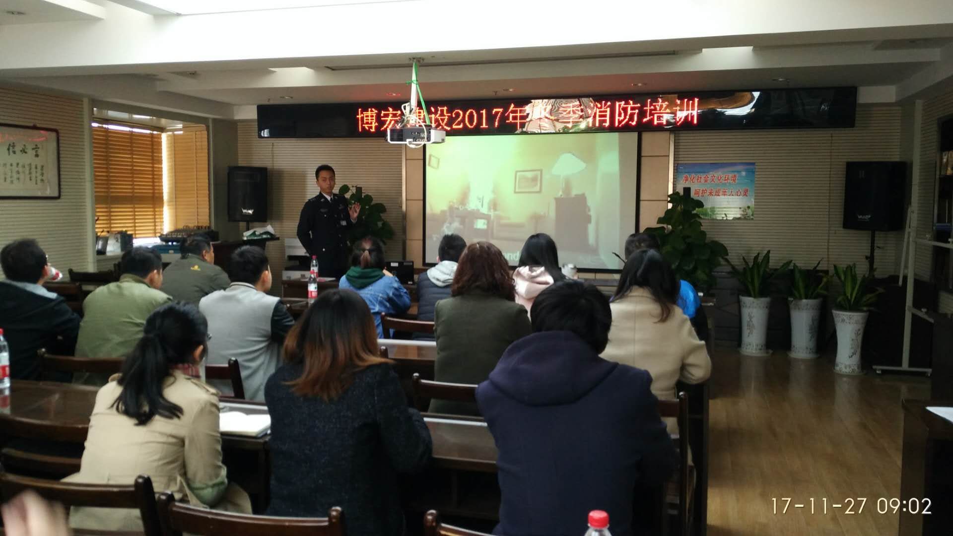 博宏建設(shè)2017年開展冬季消防培訓(xùn)。武漢的冬季,天干物燥,正是一年中最容易發(fā)生火災(zāi)事故的時(shí)間段,為提高職工消防意識(shí)及防范技能,來自省消防宣教中心的帥氣教官周老師為大家上了一堂生動(dòng)的消防安全課,公司各項(xiàng)目部及職能部門皆派出代表參加培訓(xùn)。