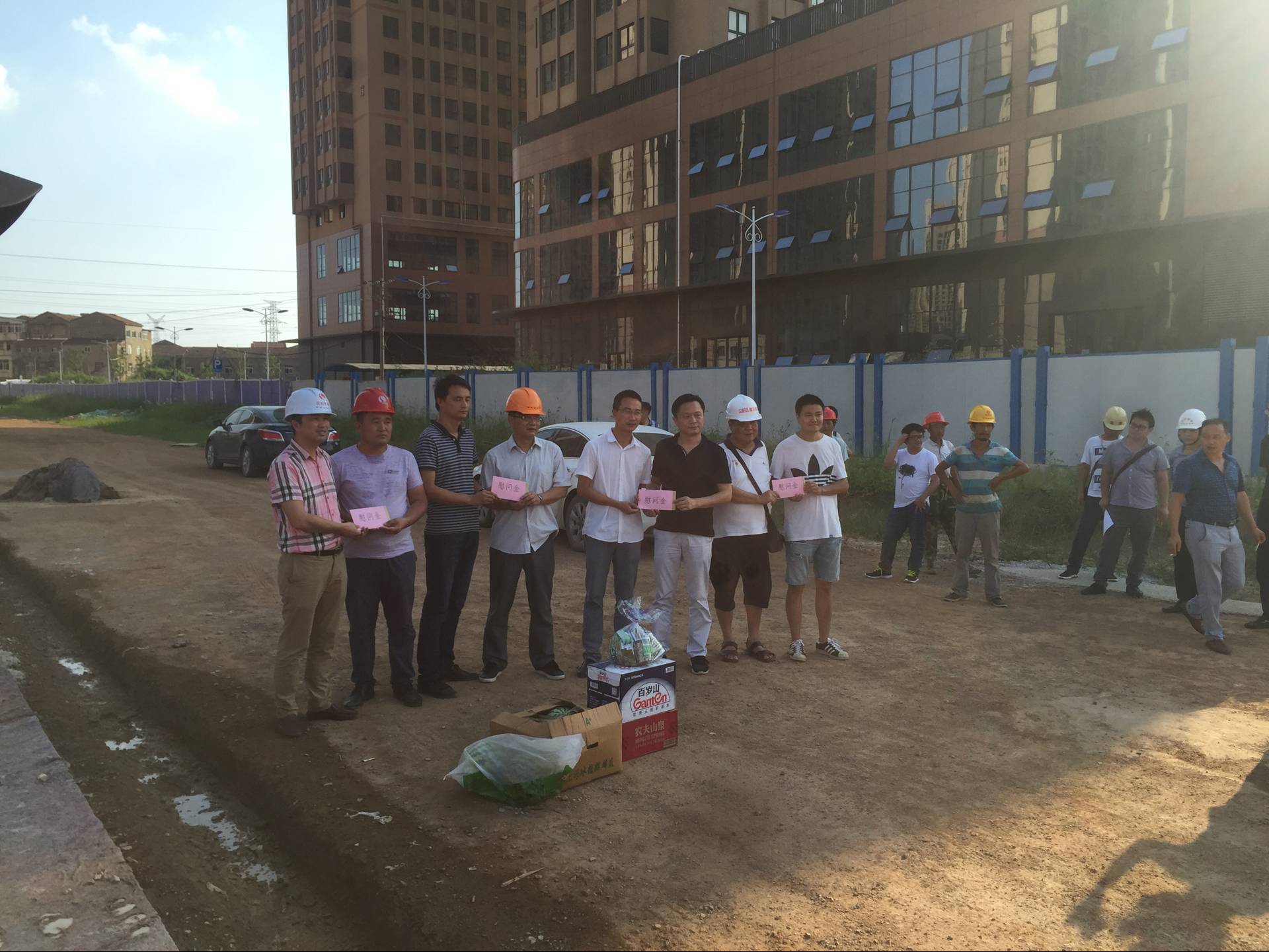 7月15日,公司慰問監(jiān)利市場項目,送來大批解暑飲品。