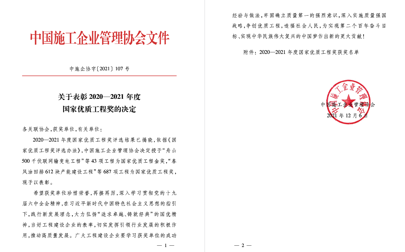 近日,該工程榮獲2020-2021年度第一批地區(qū)國(guó)家優(yōu)質(zhì)工程獎(jiǎng),實(shí)現(xiàn)了博宏建設(shè)主申報(bào)國(guó)優(yōu)項(xiàng)目“0”的突破。
