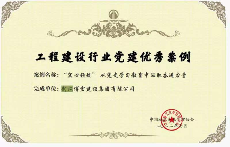 近日,中國施工企業(yè)管理協(xié)會發(fā)布文件,公布了工程建設企業(yè)黨建工作最佳案例、優(yōu)秀案例,由博宏建設集團申報的““宏心領航”,從黨史學習教育中汲取奮進力量”獲優(yōu)秀案例榮譽。