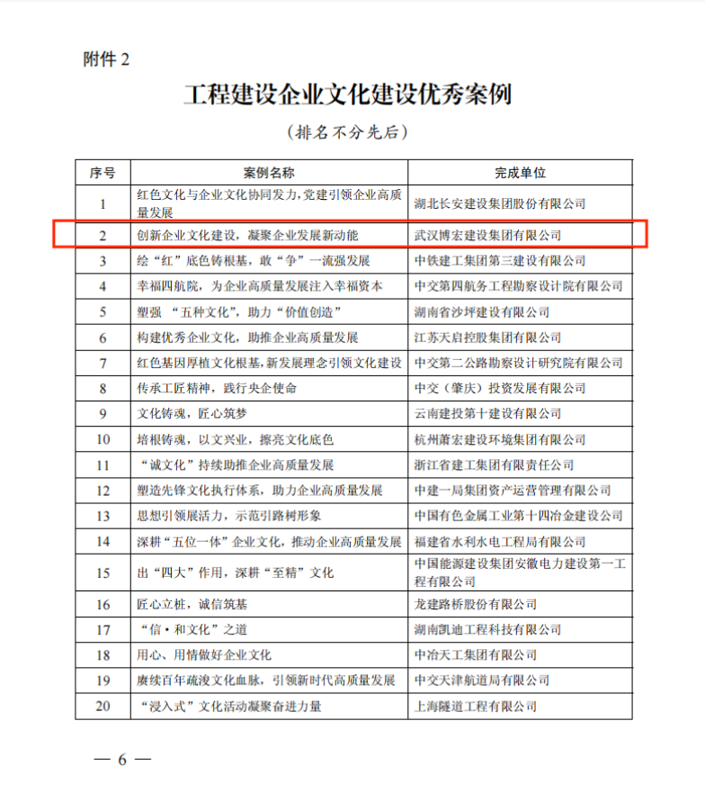 本次榮譽的獲得是對公司積極推進企業(yè)文化建設工作成果的肯定,未來博宏建設集團將繼續(xù)全面做好企業(yè)文化建設各項工作,凝聚全體員工的干事熱情,努力打造競爭型、管理型、質量型的一流房建企業(yè)。