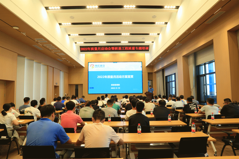 2022年9月19日,為積極響應(yīng)集團(tuán)公司關(guān)于實(shí)施質(zhì)量強(qiáng)市戰(zhàn)略的工作要求,提高公司項(xiàng)目一線員工參與質(zhì)量管理的積極性,切實(shí)提升質(zhì)量管理水平,博宏建設(shè)集團(tuán)開展以“推動(dòng)質(zhì)量變革創(chuàng)新,促進(jìn)質(zhì)量強(qiáng)國建設(shè)”為主題的2022年質(zhì)量月啟動(dòng)會暨樁基工程質(zhì)量專題培訓(xùn)會,項(xiàng)目經(jīng)理、技術(shù)負(fù)責(zé)人、生產(chǎn)經(jīng)理、質(zhì)檢員等崗位員工參加了本次會議。