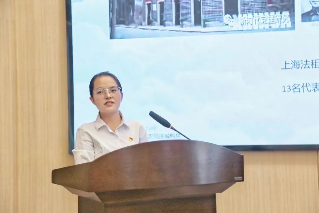 黨員方嬌林進(jìn)行社會主義改造時期黨史講解
