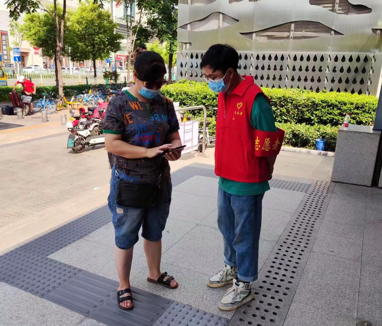 王杰(右)志愿參與社區(qū)下沉工作
