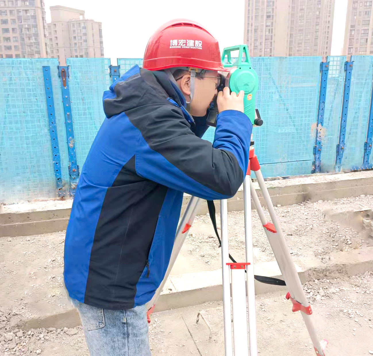 入職第一天,王杰接手的第一個(gè)任務(wù)是配合同事完成新港臨江匯項(xiàng)目1號(hào)樓的放線工作。由于是裝配式建筑,在還未吊裝樓梯的情況下,人員無法從樓梯上至作業(yè)層樓板,王杰他們只能借助爬架爬梯翻到樓板上完成放線工作,在三十米的高空,爬架和結(jié)構(gòu)外邊緣有較大距離,對(duì)于初入工地從未接觸過建筑施工現(xiàn)場(chǎng)的王杰來說,這是從未經(jīng)歷過的挑戰(zhàn),嘗試了幾次后,仍然無法完成跨越,同事們也紛紛安慰勸說讓他放棄,好強(qiáng)的他,每每想到放棄,就覺得內(nèi)心不甘,在認(rèn)真觀察及努力嘗試后,王杰最終克服了內(nèi)心的恐懼,順利登上樓板完成了放線工作。