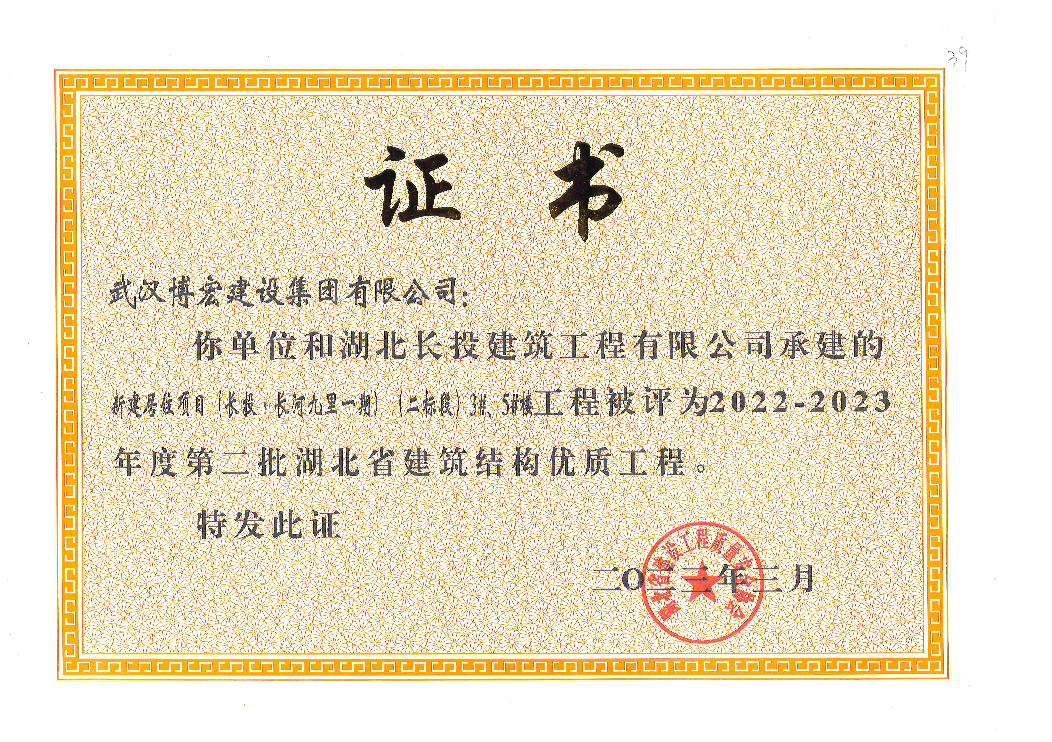 近日,湖北省住建廳2022—2023年度第二批湖北省建筑結構優(yōu)質工程項目名單出爐,由博宏建設集團承建的武漢市第五醫(yī)院改擴建項目(一期)、新建居住項目(長投·長河九里一期)(二標段)3#、5#樓榮獲湖北省建筑結構優(yōu)質工程獎。“湖北省建筑結構優(yōu)質工程獎”是湖北省建筑結構工程領域的最高獎項,獲得該獎項標志著該項目在工程結構設計、工程施工管理、材料供應保證、過程質量控制等方面均達到省級領先水平。
