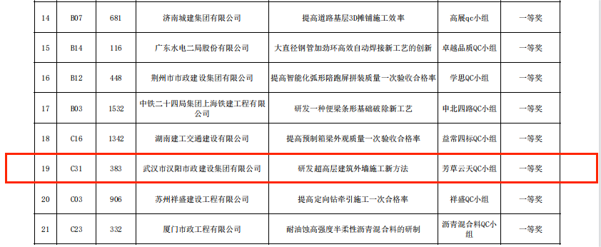 近日,中國建筑業(yè)協(xié)會、中國施工企業(yè)管理協(xié)會與中國市政工程協(xié)會工程建設(shè)質(zhì)量管理小組活動成果大賽獲獎名單陸續(xù)出爐,基于中南科研設(shè)計(jì)中心建設(shè)項(xiàng)目現(xiàn)場情況總結(jié)出的《施工電梯基礎(chǔ)支撐體系的研制》、《提高鋼結(jié)構(gòu)對接焊縫驗(yàn)收合格率》與《研發(fā)超高層建筑外墻施工新方法》3項(xiàng)QC成果榮獲國家級獎項(xiàng)。