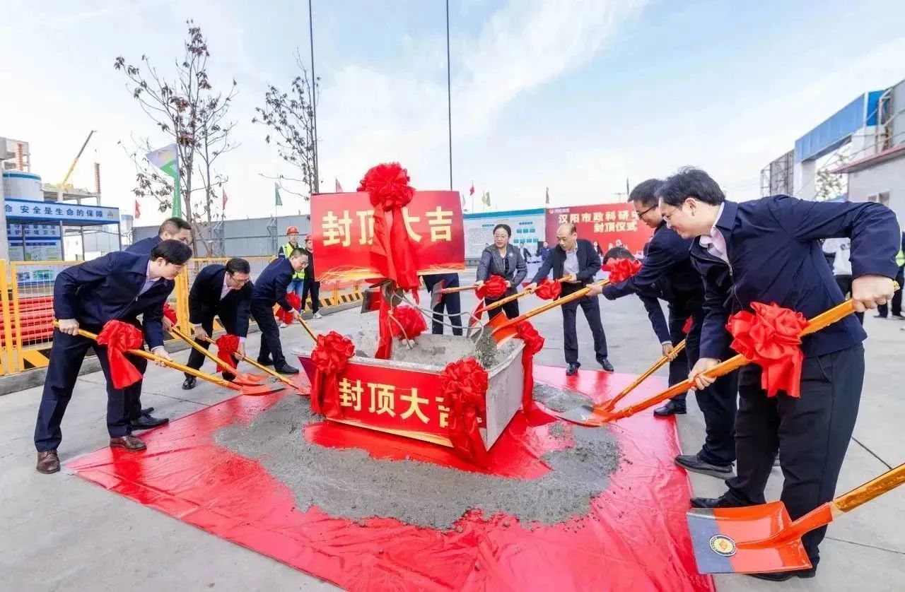 2023年11月8日上午,漢陽(yáng)市政科研中心封頂儀式在項(xiàng)目現(xiàn)場(chǎng)隆重舉行。漢陽(yáng)區(qū)國(guó)資局黨組書記、局長(zhǎng)嚴(yán)俊,漢陽(yáng)區(qū)建設(shè)局黨組成員、漢陽(yáng)區(qū)建管站站長(zhǎng)王晟,漢陽(yáng)市政集團(tuán)黨委副書記、副董事長(zhǎng)虞志鵬,總工程師荊武及相關(guān)部門負(fù)責(zé)人,兄弟單位主要領(lǐng)導(dǎo),博宏建設(shè)集團(tuán)黨委書記、董事長(zhǎng)、總經(jīng)理鄒勇,常務(wù)副總經(jīng)理奚雷等相關(guān)領(lǐng)導(dǎo),以及項(xiàng)目一線建設(shè)者共計(jì)60余人共同見(jiàn)證項(xiàng)目封頂。