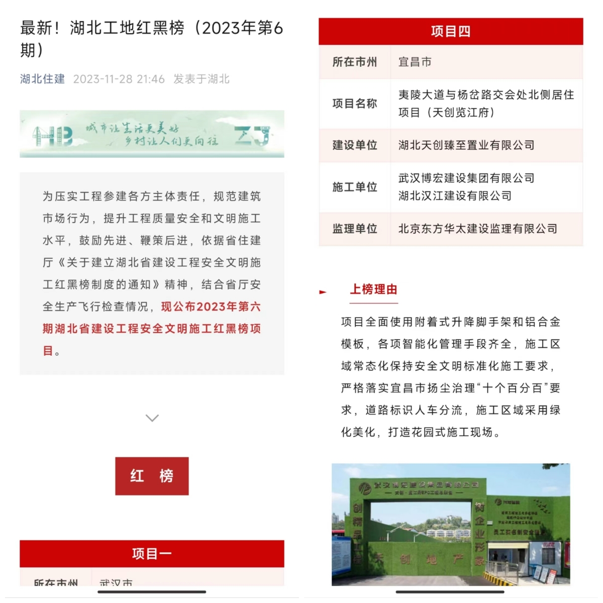 自進(jìn)場施工以來,項(xiàng)目榮登4次宜昌市建筑市場管理紅榜,喜獲宜昌市標(biāo)準(zhǔn)化安薪工地、市安全文明工地等多項(xiàng)榮譽(yù),昨日傳來喜訊:項(xiàng)目喜上加喜,榮登第六期湖北省建設(shè)工程安全文明施工紅榜。