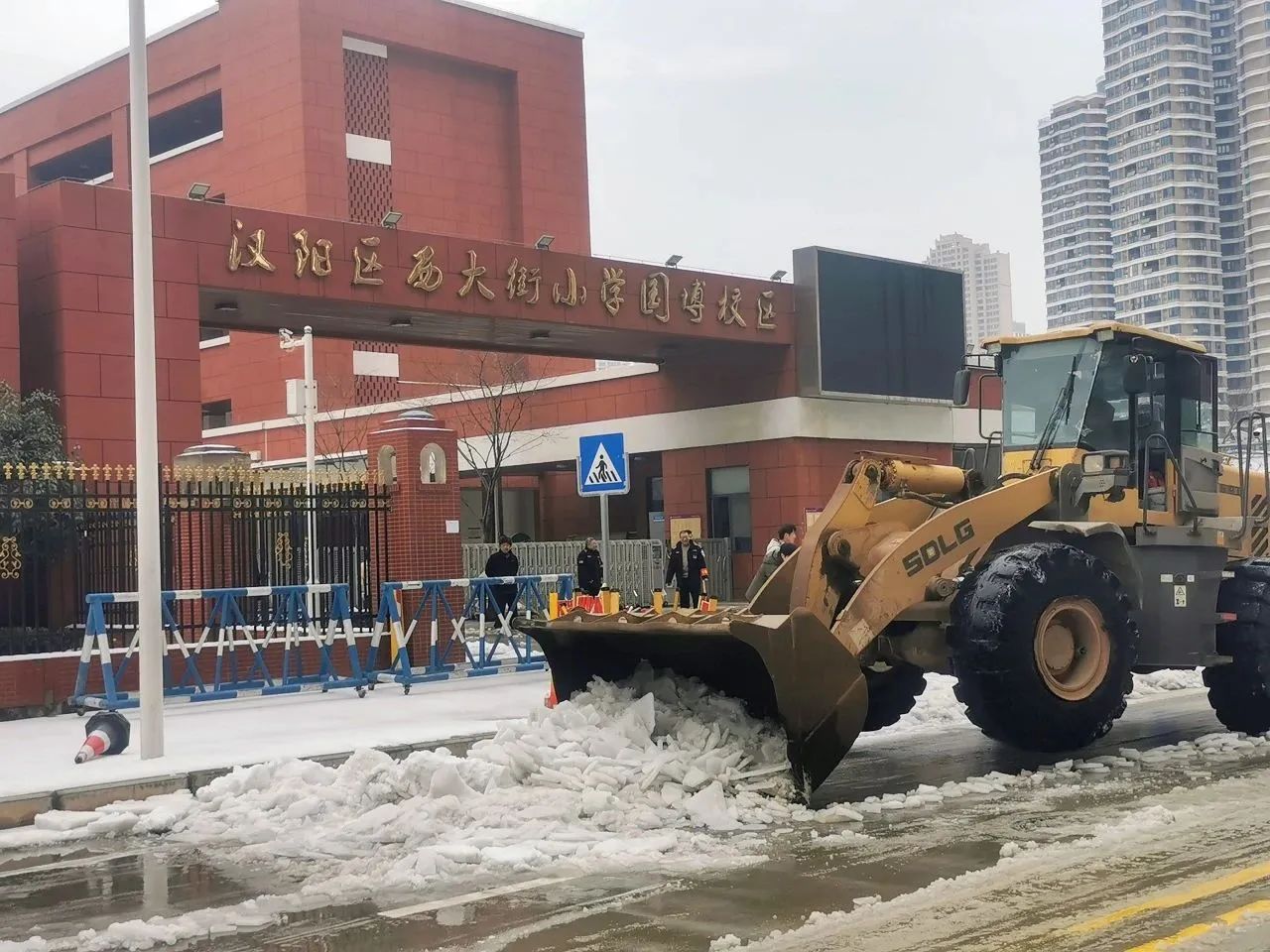 本次應(yīng)急行動(dòng)累計(jì)出動(dòng)61人次,鏟車(chē)14臺(tái),巡查車(chē)輛7臺(tái),撒鹽車(chē)輛3臺(tái),撒融雪劑0.5噸,共對(duì)五里墩小學(xué)、翠微中學(xué)、七里小學(xué)、武漢市第三中學(xué)、西大街至誠(chéng)小學(xué)、墨水湖小學(xué)東校區(qū)等八所學(xué)校道路的積雪進(jìn)行了清理,并鏟除路面結(jié)冰。