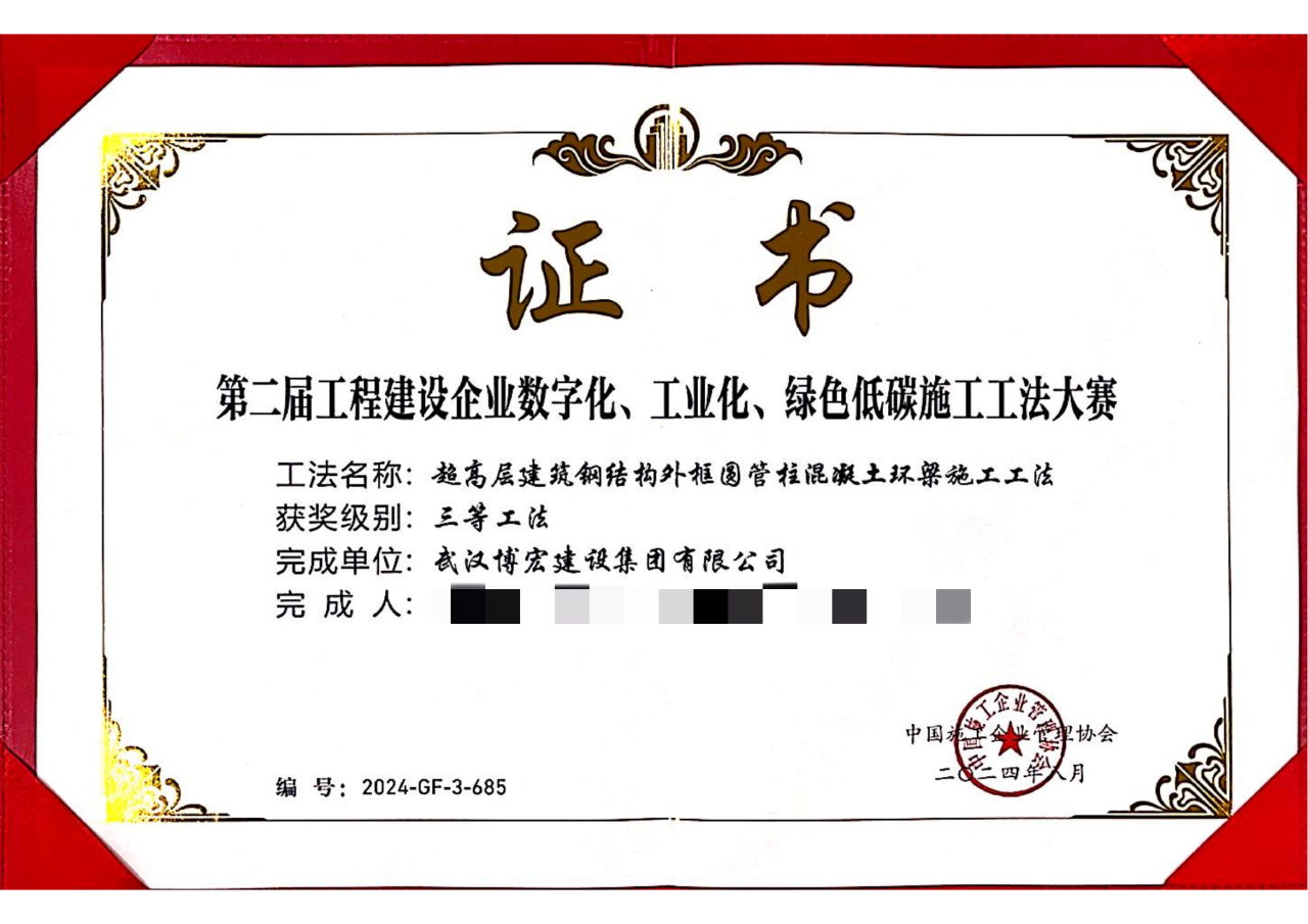 這些獎項的獲得,是對公司堅定不移走科技創(chuàng)新發(fā)展之路的有力印證。未來,博宏建設集團將更加重視工法、微創(chuàng)新成果的轉化與應用,持續(xù)激發(fā)技術人員創(chuàng)新活力,加快發(fā)展新質生產(chǎn)力,不斷提升技術實力和核心競爭力,為高質量可持續(xù)發(fā)展提供有力技術支撐。