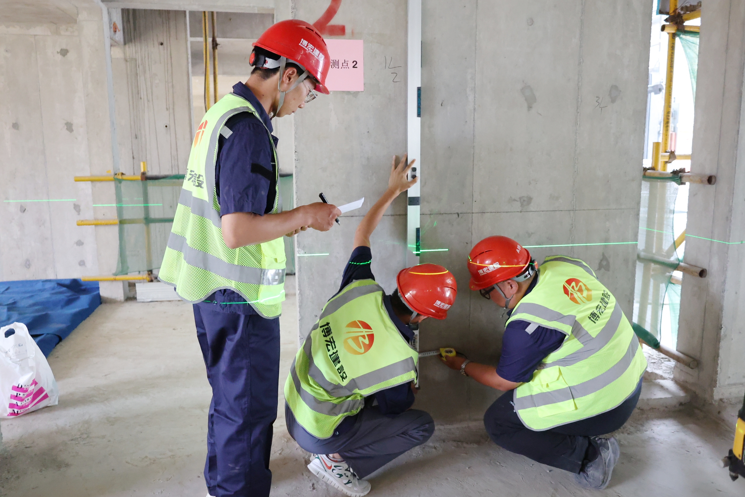 本次比賽內(nèi)容涵蓋剪力墻垂直度及平整度、頂板極差、結(jié)構(gòu)回彈強(qiáng)度等數(shù)據(jù)的現(xiàn)場(chǎng)測(cè)量。比賽過程中,參賽選手們分工明確,緊密配合,比觀察、看準(zhǔn)度、展專業(yè),嚴(yán)謹(jǐn)細(xì)致,爭(zhēng)分奪秒,表現(xiàn)出優(yōu)異的測(cè)量技能水平。
