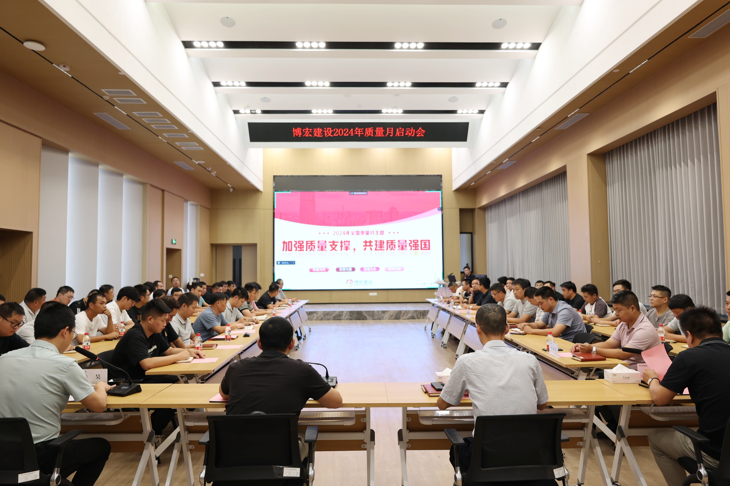 8月29日下午,博宏建設舉辦以“加強質(zhì)量支撐,共建質(zhì)量強國”為主題的2024年“質(zhì)量月”啟動會,黨委書記、董事長、總經(jīng)理鄒勇,總經(jīng)理助理李暉,市內(nèi)外各項目部負責人及質(zhì)量崗位人員90余人參與活動。會上,對“質(zhì)量月”的主題、方針、理念和口號進行了深入宣貫,號召全體員工進一步強化質(zhì)量意識,共同推動項目質(zhì)量提升。