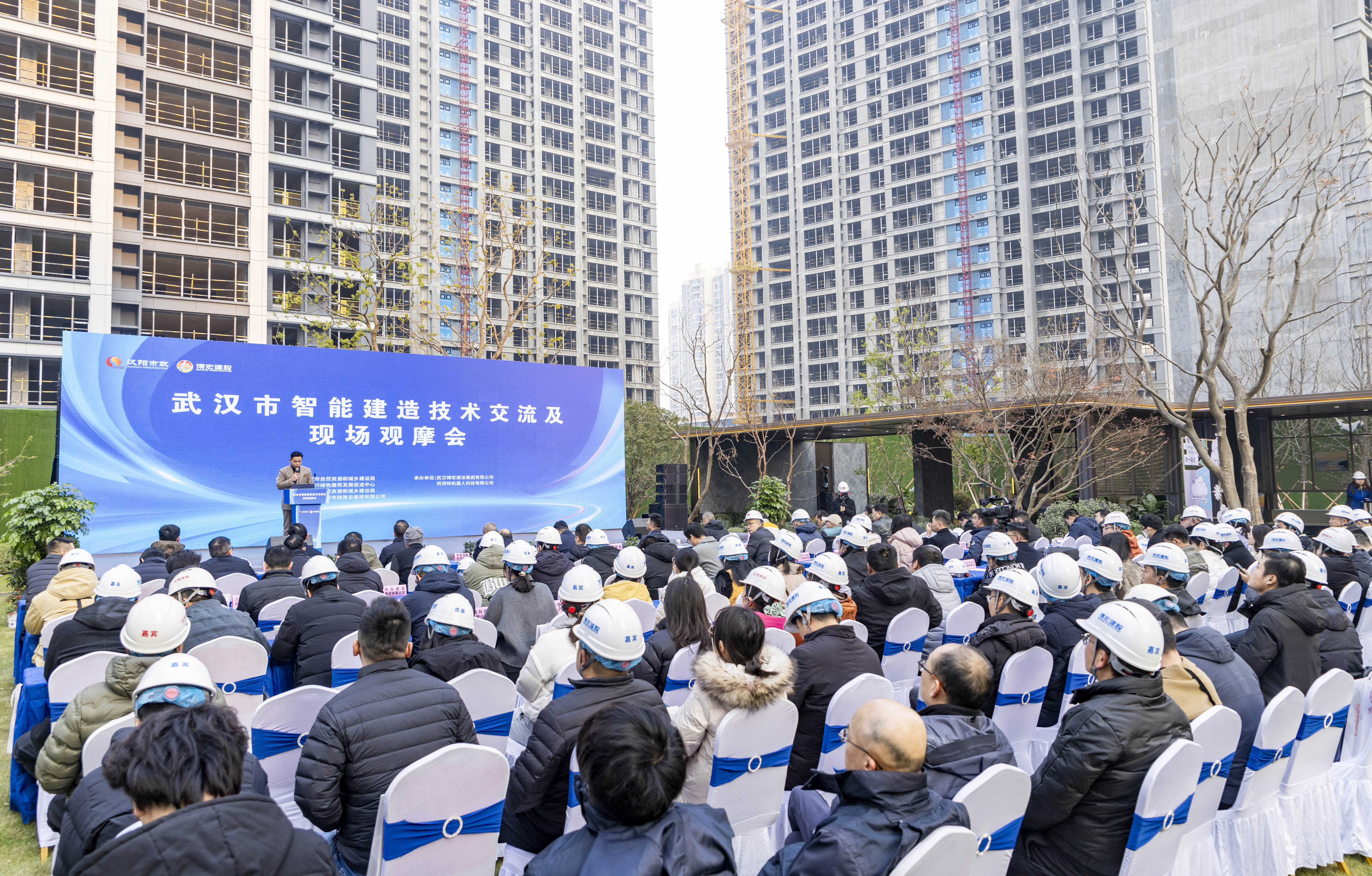 1月3日,由武漢市自然資源和城鄉(xiāng)建設(shè)局指導(dǎo),武漢市綠色建筑發(fā)展促進(jìn)中心、漢陽區(qū)自然資源和城鄉(xiāng)建設(shè)局、武漢市漢陽市政建設(shè)集團有限公司主辦,武漢博宏建設(shè)集團有限公司等兩家單位聯(lián)合承辦的武漢市智能建造技術(shù)交流及現(xiàn)場觀摩會在云棲風(fēng)華項目舉行。